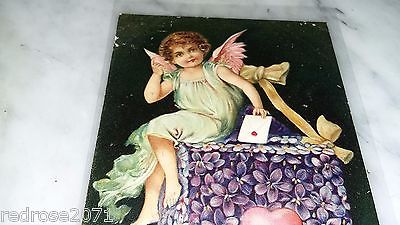 OLD CHRISTMAS greeting postcard cupid ANGEL cherub FLOWERY MAIL BOX Violets PFB