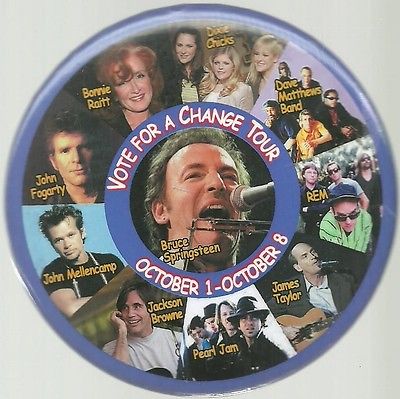 JOHN KERRY, VOTE FOR CHANGE TOUR SPRINGSTEEN, REM, JAMES TAYLOR POLITICAL PIN