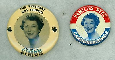 2 Vintage 1960s New York Council Caroline Simon Political Pinback Buttons