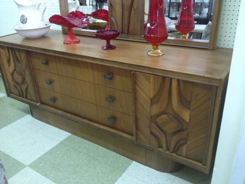 Title (ebay affiliate link): Danish Modern Carved Walnut Credenza Dresser Flat Screen TV Stand by Lane
