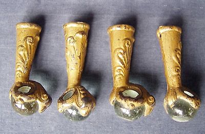 Set Of 4 Antique Cast Iron Claw Glass Ball Feet - Stool, Table, Furniture Legs
