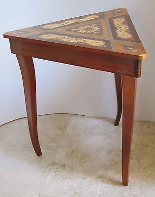 Italian Marquetry Lift Top Jewelry Music Box table Italy inlay wood triangle