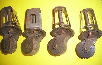 VINTAGE SET OF 4 METAL CASTERS WOOD WOODEN WHEELS FOR IRON BED?