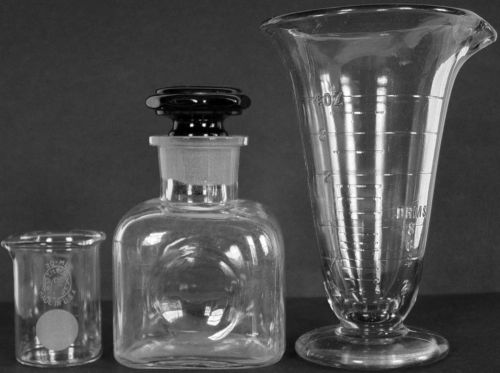 Title (ebay affiliate link): 3 Pieces Laboratory GLASS, Small 30 Ml, Thick Graduated 30Z with DRMS, Black Top