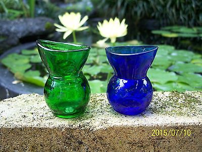 lot of 2 England Made Green Glass & Blue Reservoir Eye Bath Wash Cups