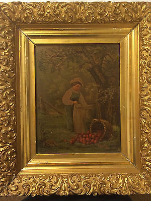 Antique Chromolithograph Painting on Slate Ornate Gold Frame George E Niles 1887