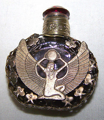 VINTAGE CZECH PERFUME BOTTLE - PURPLE AMETHYST glass with SPHINX