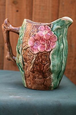 Title (ebay affiliate link): SUPERB 19thC MAJOLICA JUG or PITCHER WITH FLOWERS & LEAF DECORATION c1880s