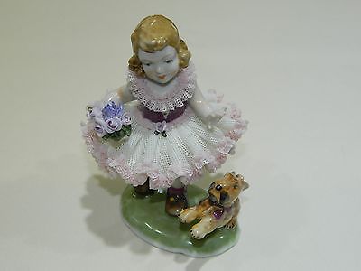 Dresden Original Germany Girl Holding Flowers with Dog Figurine