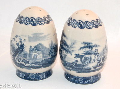 SALT & PEPPER SET ~BLUE & CREAM TRANSFERWARE TOILE ~Serene Pasture Scene NEW!!
