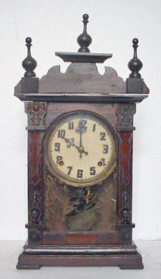 Title (ebay affiliate link): ANTIQUE 3 FINIAL PAINTED PANEL DECORATED MANTLE CLOCK