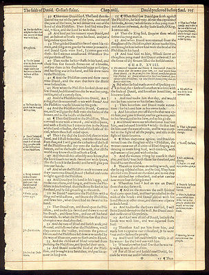 1606 Geneva Quarto RED RULED Bible Leaf/RARE/1ST SAMUEL/DAVID AND GOLIATH!