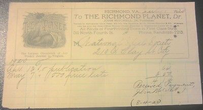 Title (ebay affiliate link): 1920 Invoice Richmond Planet Negro Newspaper Signed John Mitchell Virginia