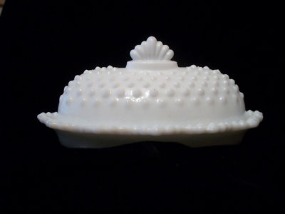 Hob Nail Milk Glass Butter Dish