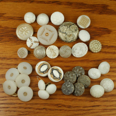 34 Antique Glass Buttons - Clam Broth & Milk Glass