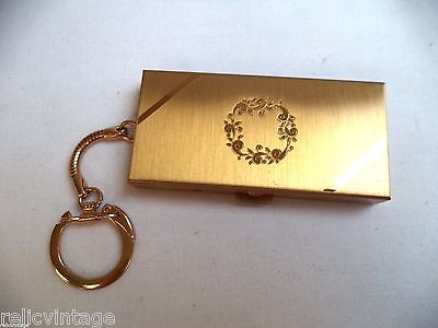 STUNNING VINTAGE GOLD TONE FLORAL DESIGN FABRIC TRINKET BOX KEY CHAIN!!! 727G