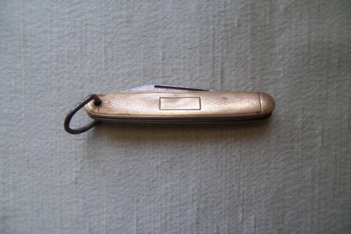 Vtg ART DECO Single Folding Blade POCKET PEN KNIFE USA Key Chain WATCH FOB Metal