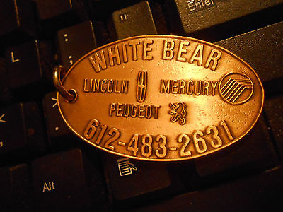VINTAGE "WHITE BEAR LINCOLN MERCURY PEUGEOT" CAR DEALER BRASS KEY CHAIN