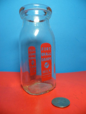 FORT BRAGG DAIRY MILK BOTTLE 1/2 PINT 1949, EX. COND.