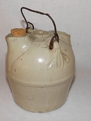 Old Antique WEEKS Stoneware Pottery Bailed Jug Pitcher Akron Ohio