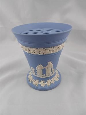 WEDGWOOD white on pale blue jasperware Frog Insert CUPID LARGE Vase 1973