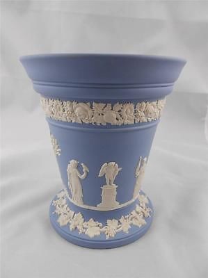 WEDGWOOD white on pale blue jasperware Frog Insert SACRIFICE LARGE Vase 1968