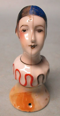 Antique German French Half Doll Porcelain Clown Harlequin Pierrot Head