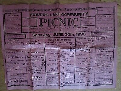 Title (ebay affiliate link): Large banner SIGN for POWERS LAKE PICNIC (N.Dakota) 1936 - ads, events, prizes