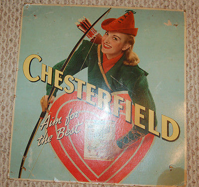 Title (ebay affiliate link): CHESTERFIELD CIGARETTES ORIGINAL 1940s ROBIN HOOD CARDBOARD SIGN