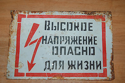 Vintage DANGER High Voltage Steel Russian Sign