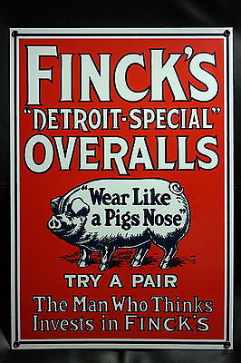 "Large 12"x17" Finck's Detroit-Special Overalls Porcelain/Advertising Sign