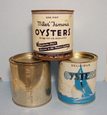 Title (ebay affiliate link): Lot of (3) one pint oyster tin can Miles Curley Webb Virginia cans