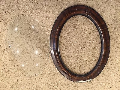 Vintage Oval Tiger Wood Picture Frame w/ Bubble Glass Convex Glass
