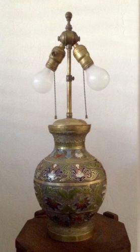 ANTIQUE BRASS Japanese CLOISONNÉ ENAMEL LAMP ASIAN ENGRAVED beauty