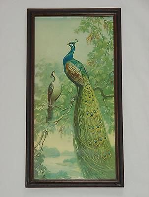 Orig Old Print & Frame Vintage 1920s Art Deco Exotic Bird Framed Peacock Picture