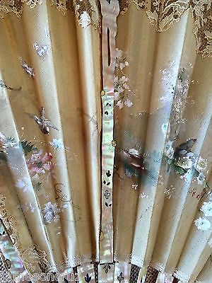 Antique 1800s Brussels Lace Silk Birds Mother of Pearl Tree Branches Silver Gold