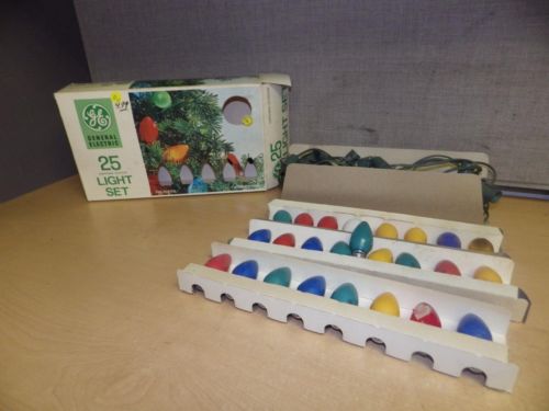 Title (ebay affiliate link): Vintage GE C-7? Christmas Light Set 25 Glass Bulbs Large New Old Stock PB 116