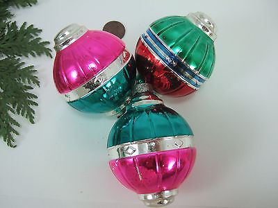 3 Vintage Mercury Glass Aqua Hot Pink Lantern Christmas Ornament