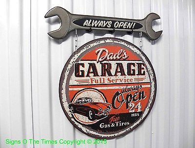 Title (ebay affiliate link): Large Dads Garage Metal Deco Father Dad Chevy Ford Mopar Chrysler Corvette USA