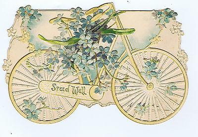 Vintage Raphael Tuck bicycle Christmas card artistic series die cut embossed
