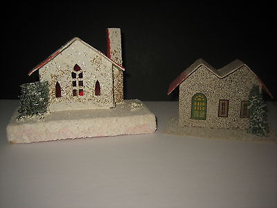 Vintage Cardboard putz houses Old Time Christmas village decorations japan