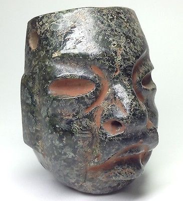 Title (ebay affiliate link): PRE COLUMBIAN OLMEC STYLE MASKETTE PENDANT , SERPENTINE STONE