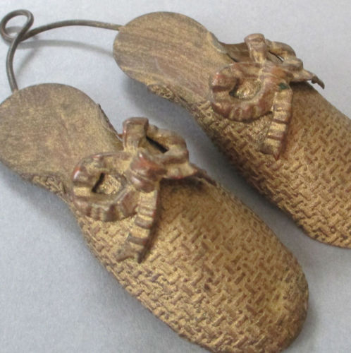Title (ebay affiliate link): Antique VICTORIAN 19thC GILT Pressed TIN Match Safe Pair SHOES Slippers w BOWS