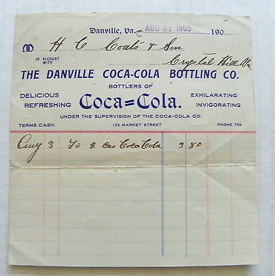 1905 DANVILLE "COCA-COLA" BOTTLING, CO. INVOICE
