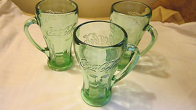 Coca Cola Green Tint Large Glass Mug/Handled Glass by Libbey 3 still have sticke