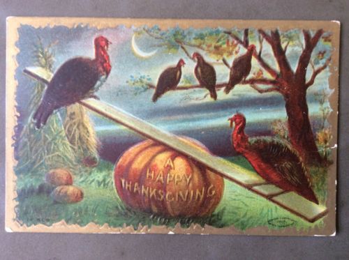 Title (ebay affiliate link): A Happy Thanksgiving Turkeys & Pumpkin Postcard Vintage