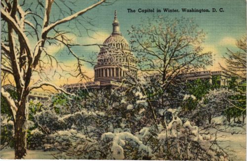 Title (ebay affiliate link): DR JIM STAMPS US CAPITOL IN WINTER WASHINGTON DC LINEN POSTCARD 1941