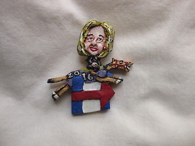 Title (ebay affiliate link): Hillary Clinton on Donkey leaping Logo 2016 Presidential Campaign Novelty Pin