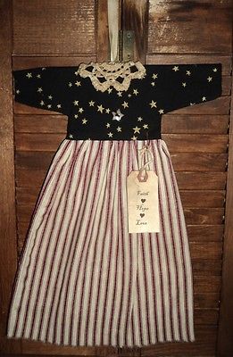Title (ebay affiliate link): GRUNGY~PRIMITIVE WALL~CUPBOARD~DOLL DRESS AMERICANA TICKING STARS FOLK ART DECOR