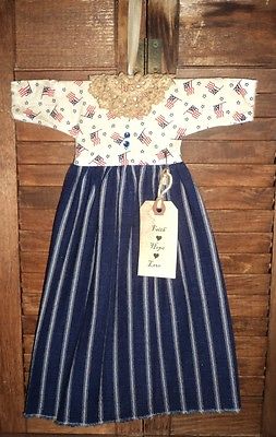 Title (ebay affiliate link): GRUNGY~PRIMITIVE WALL~CUPBOARD~DOLL DRESS AMERICANA FLAGS BLUE FOLK ART DECOR